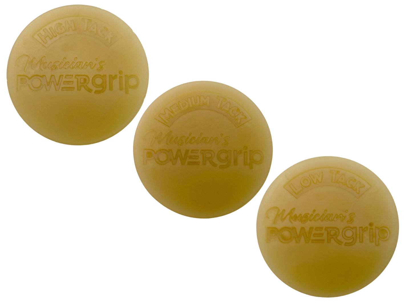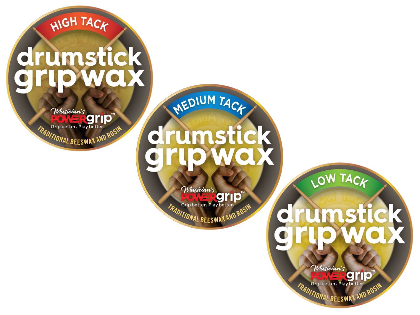 High Tack: Very sticky. Double the gripping power of Medium Tack. Perfect when you need maximum adhesion (drumstick momentarily clings to overturned palm).